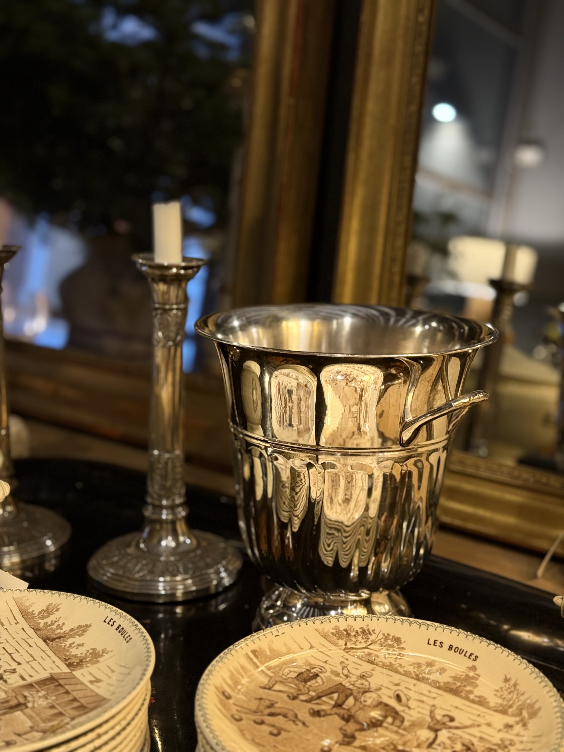 Champañera 1 botella de metal plateado. Con ondas, francesa.
