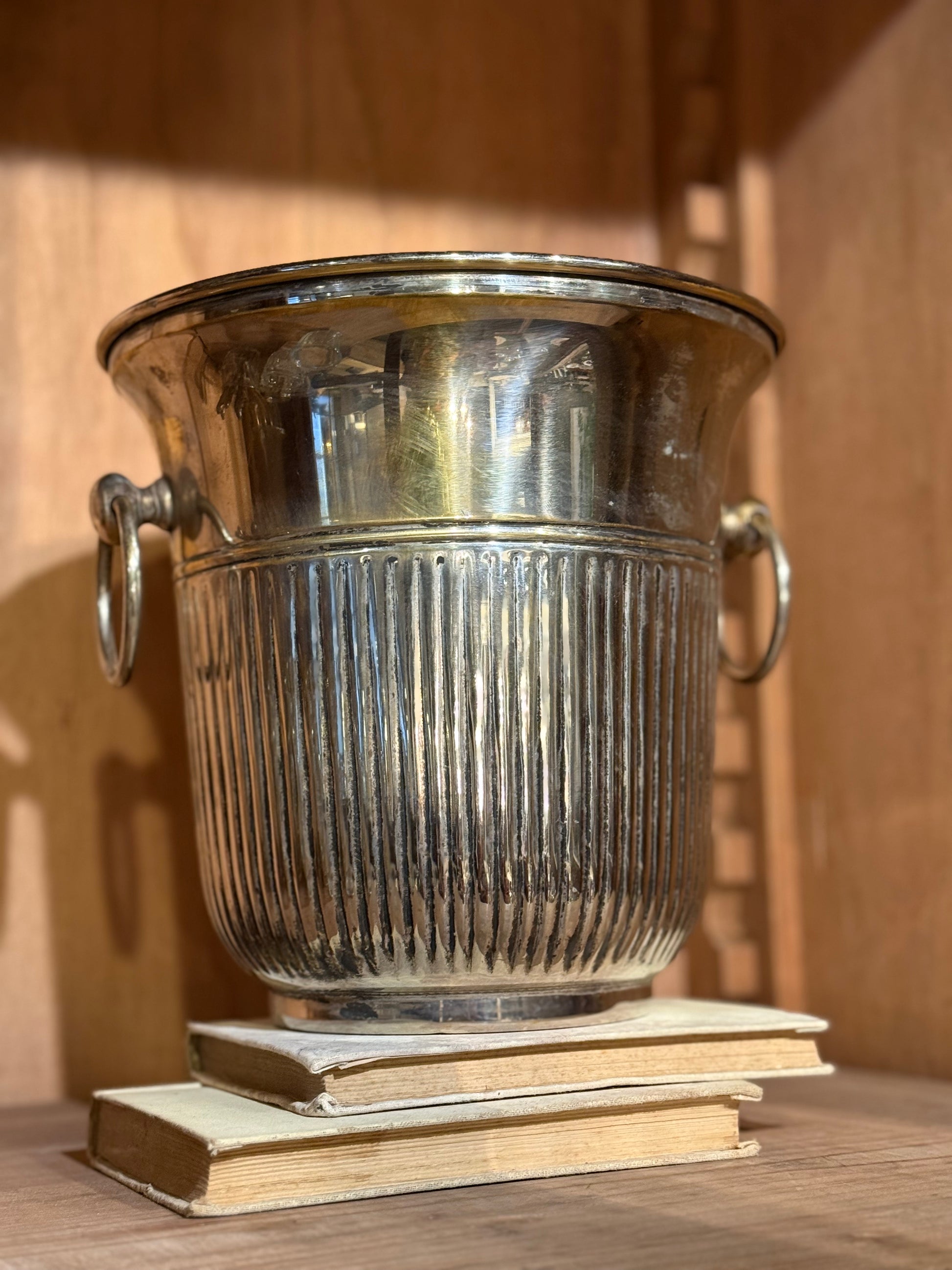 Elegante champañera individual realizada en metal plateado, perfecta para mantener fresca una sola botella con estilo y sofisticación. Su diseño clásico y su acabado brillante la convierten en una pieza ideal tanto para uso diario como para ocasiones especiales.