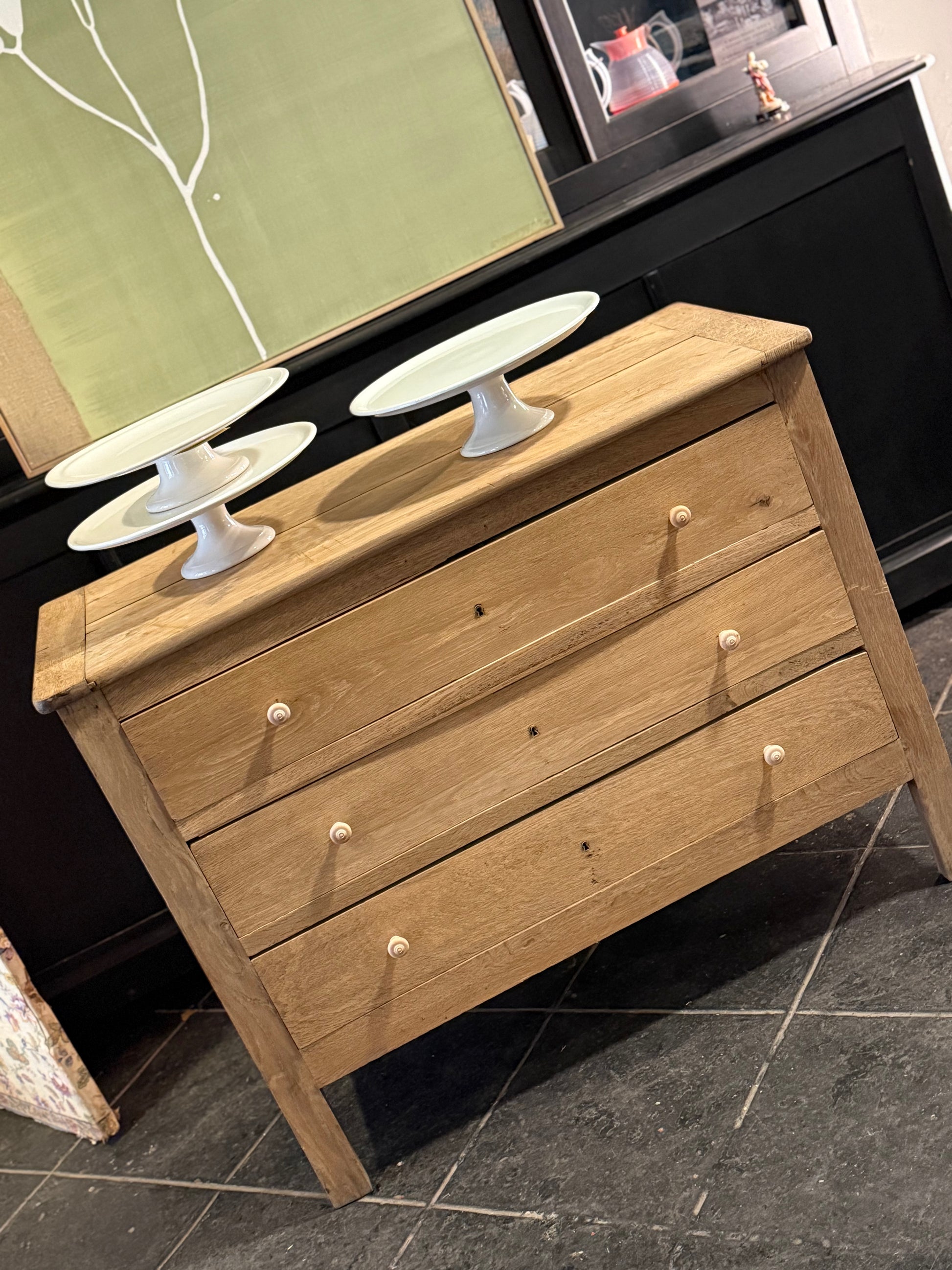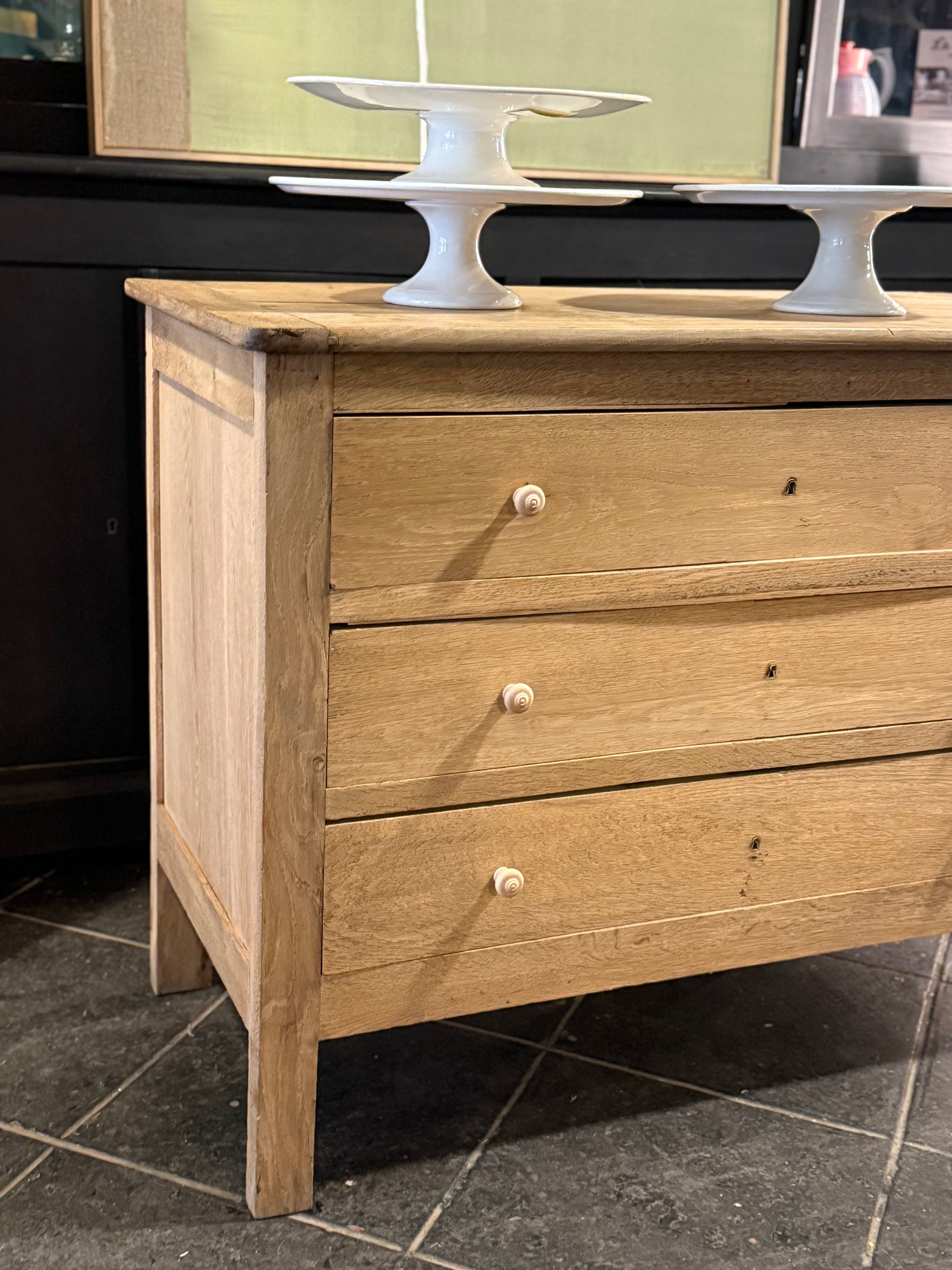 Cómoda de roble con un diseño sencillo y atemporal que destaca por la calidez de la madera y sus líneas depuradas. Perfecta para sumar capacidad de almacenaje en dormitorios, salones o entradas, sin renunciar al encanto de una pieza bien conservada.