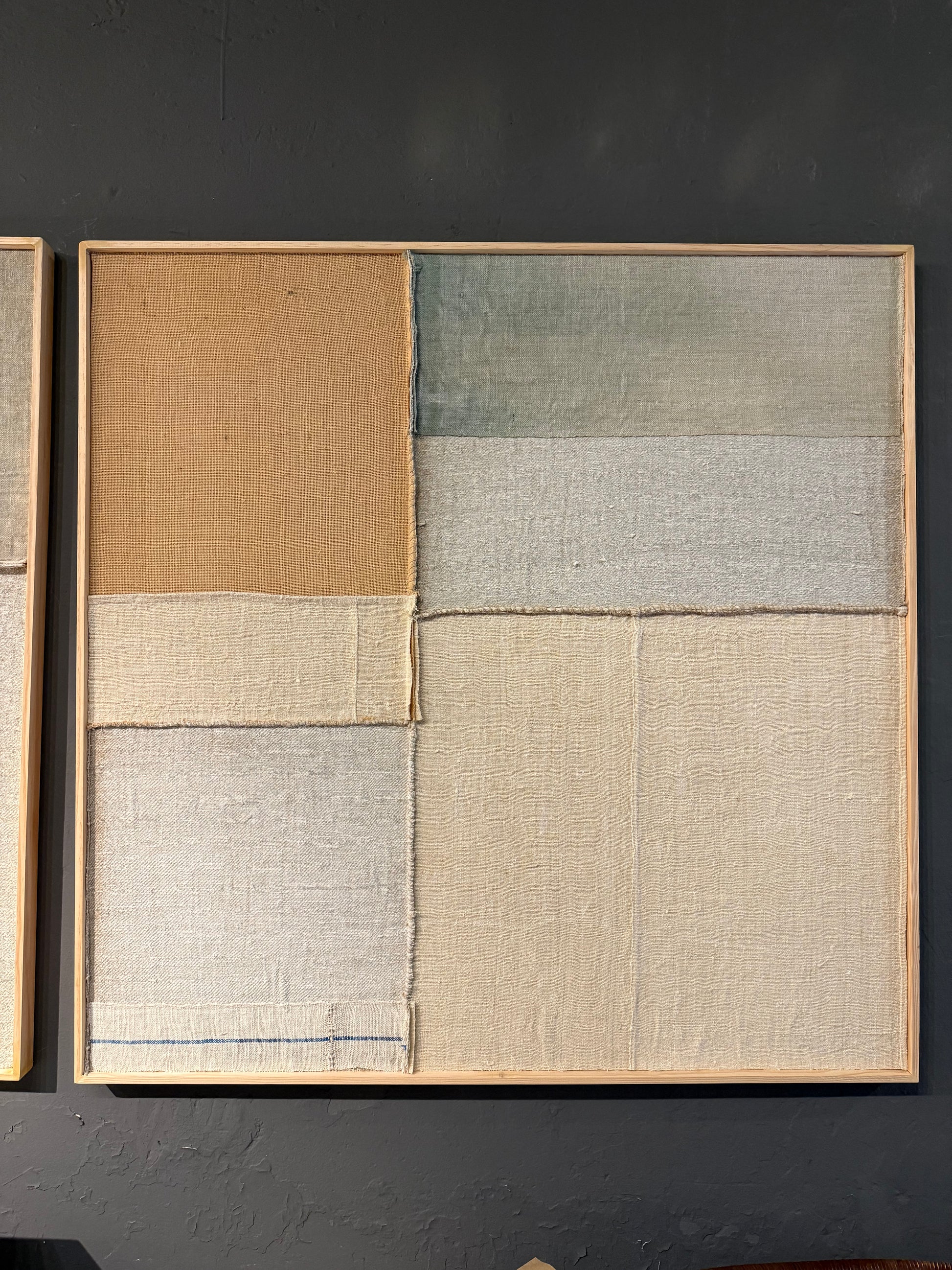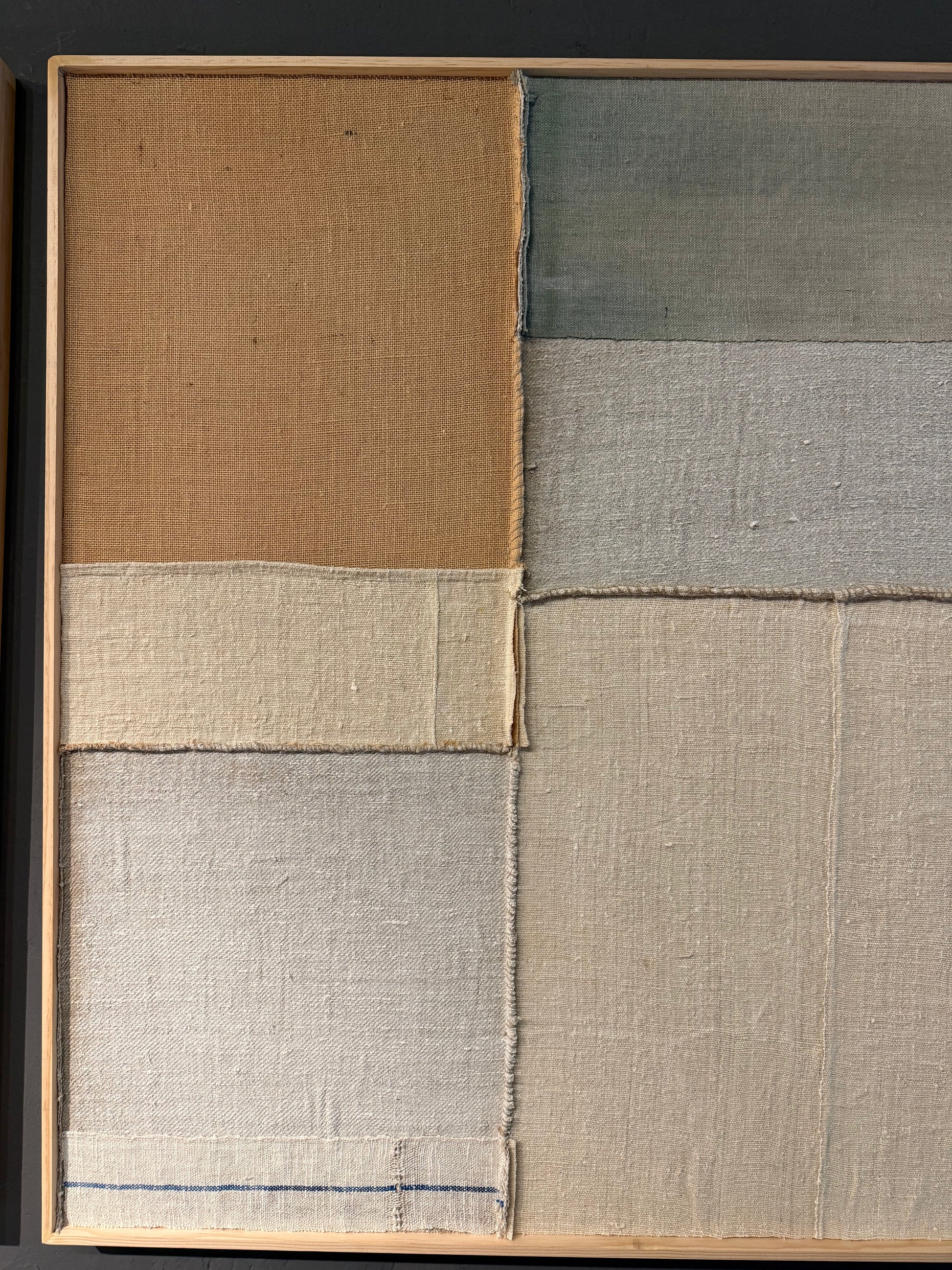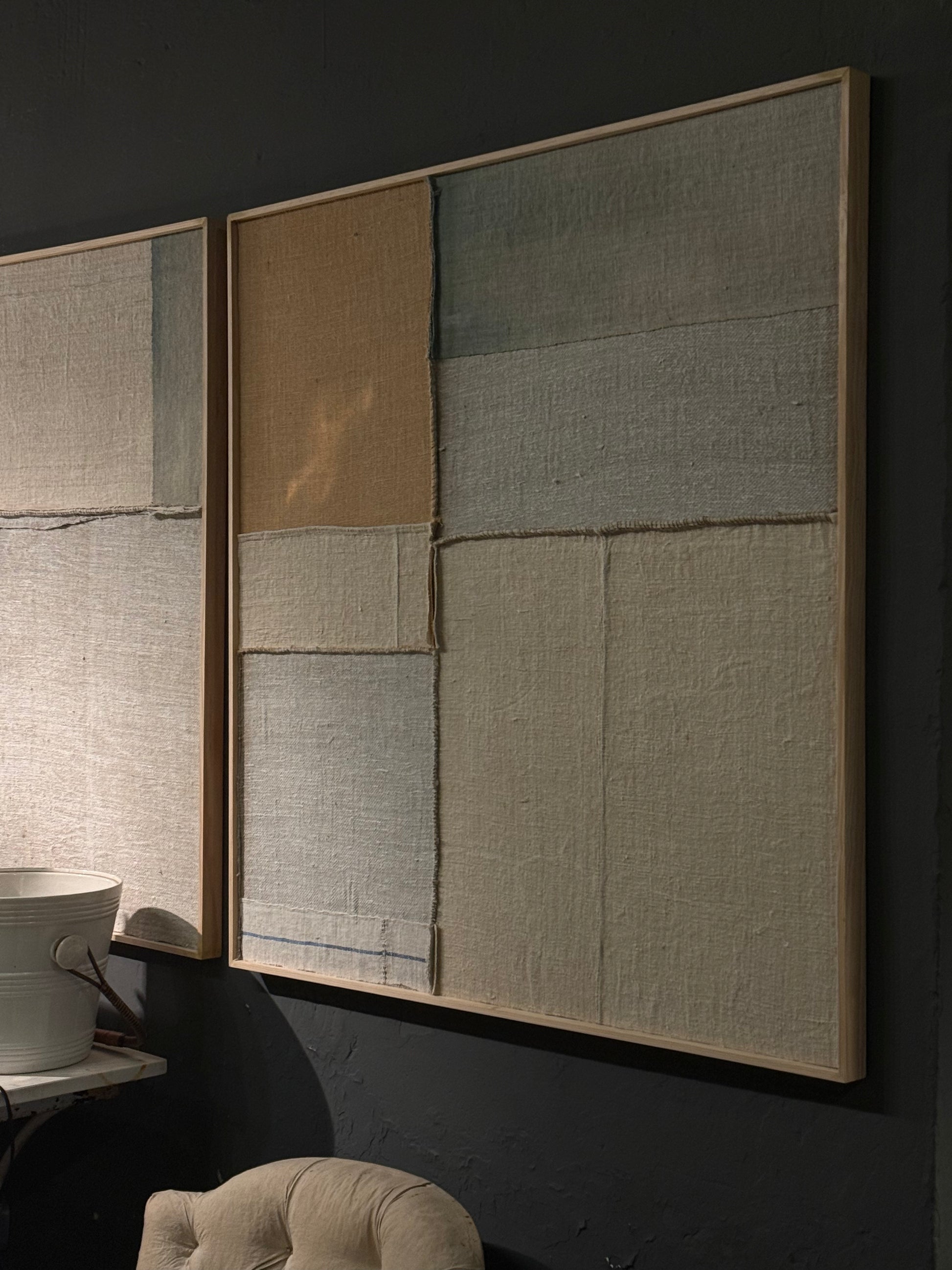 Pieza única realizada a partir de una cuidada selección de linos franceses antiguos. Una composición equilibrada y llena de matices, donde cada tejido aporta su propia textura, tonalidad y carácter.