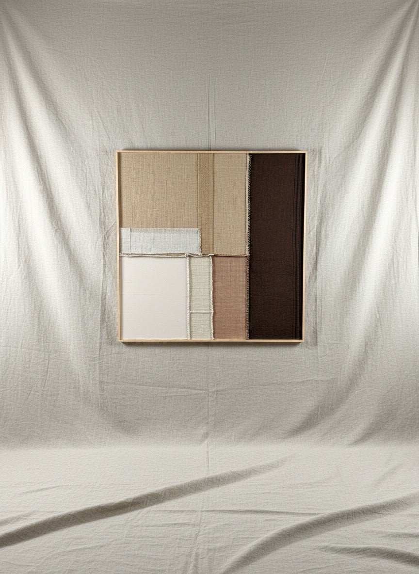 Pieza única realizada a partir de una cuidada selección de linos franceses antiguos. Una composición equilibrada y llena de matices, donde cada tejido aporta su propia textura, tonalidad y carácter.