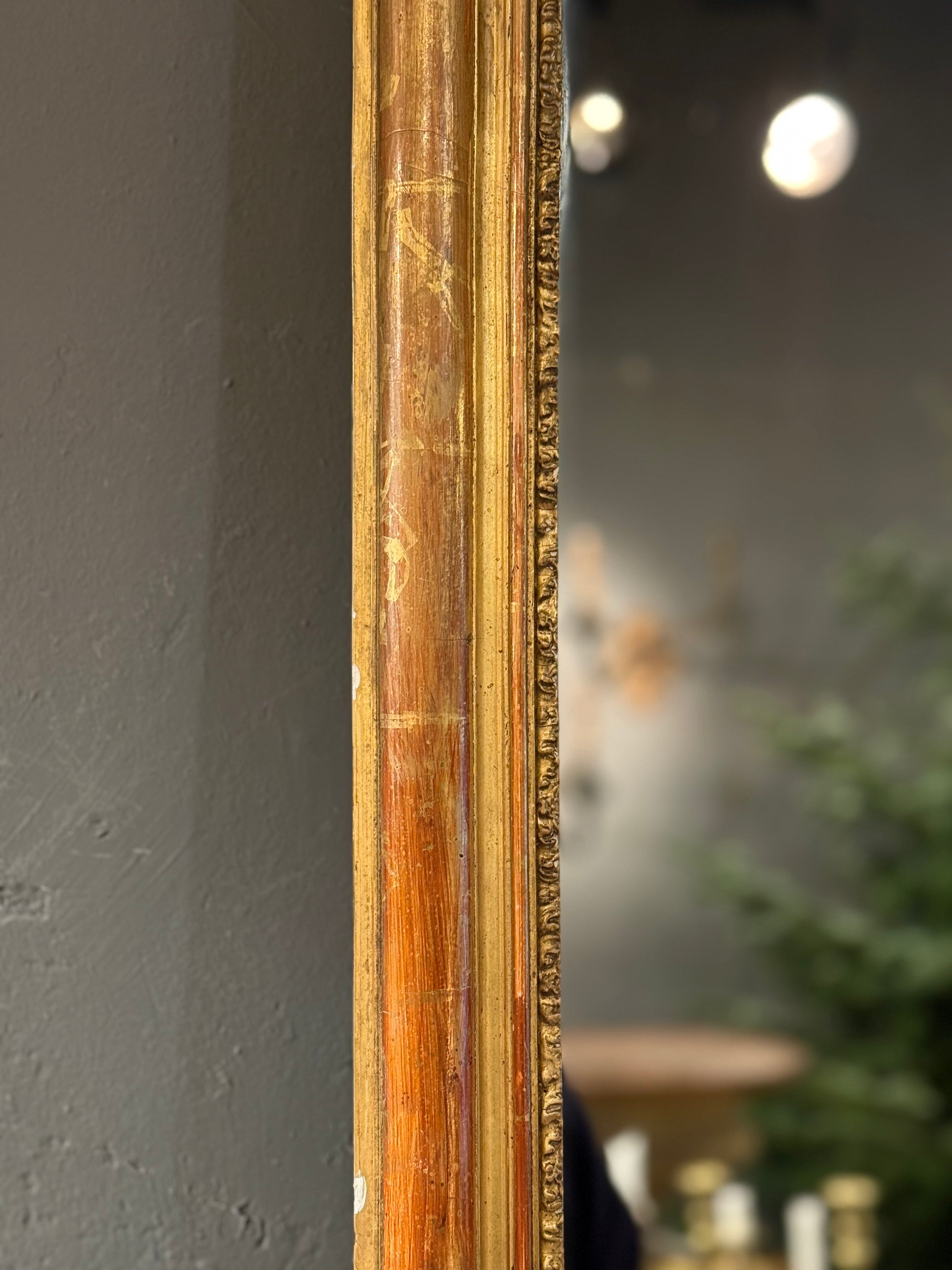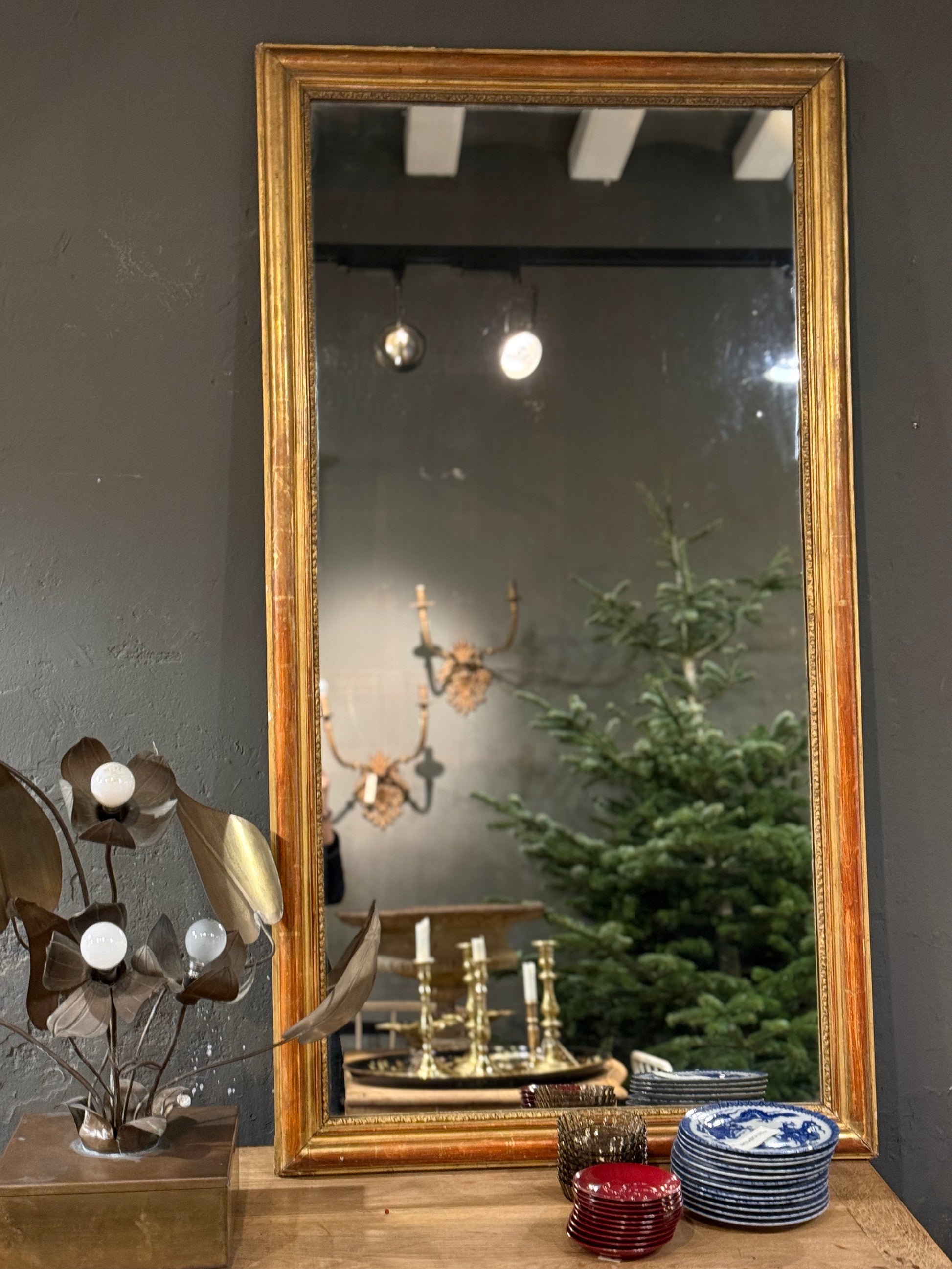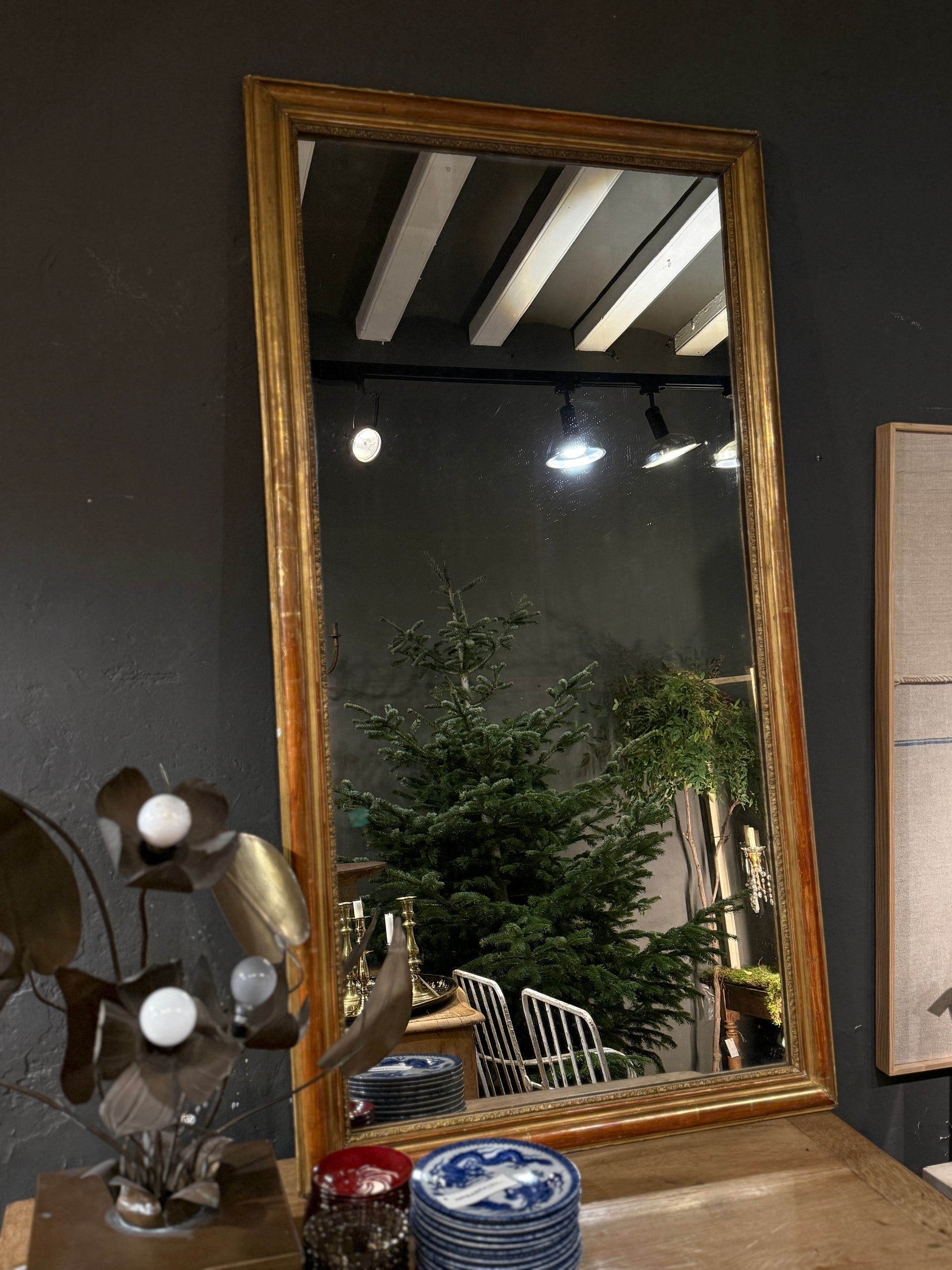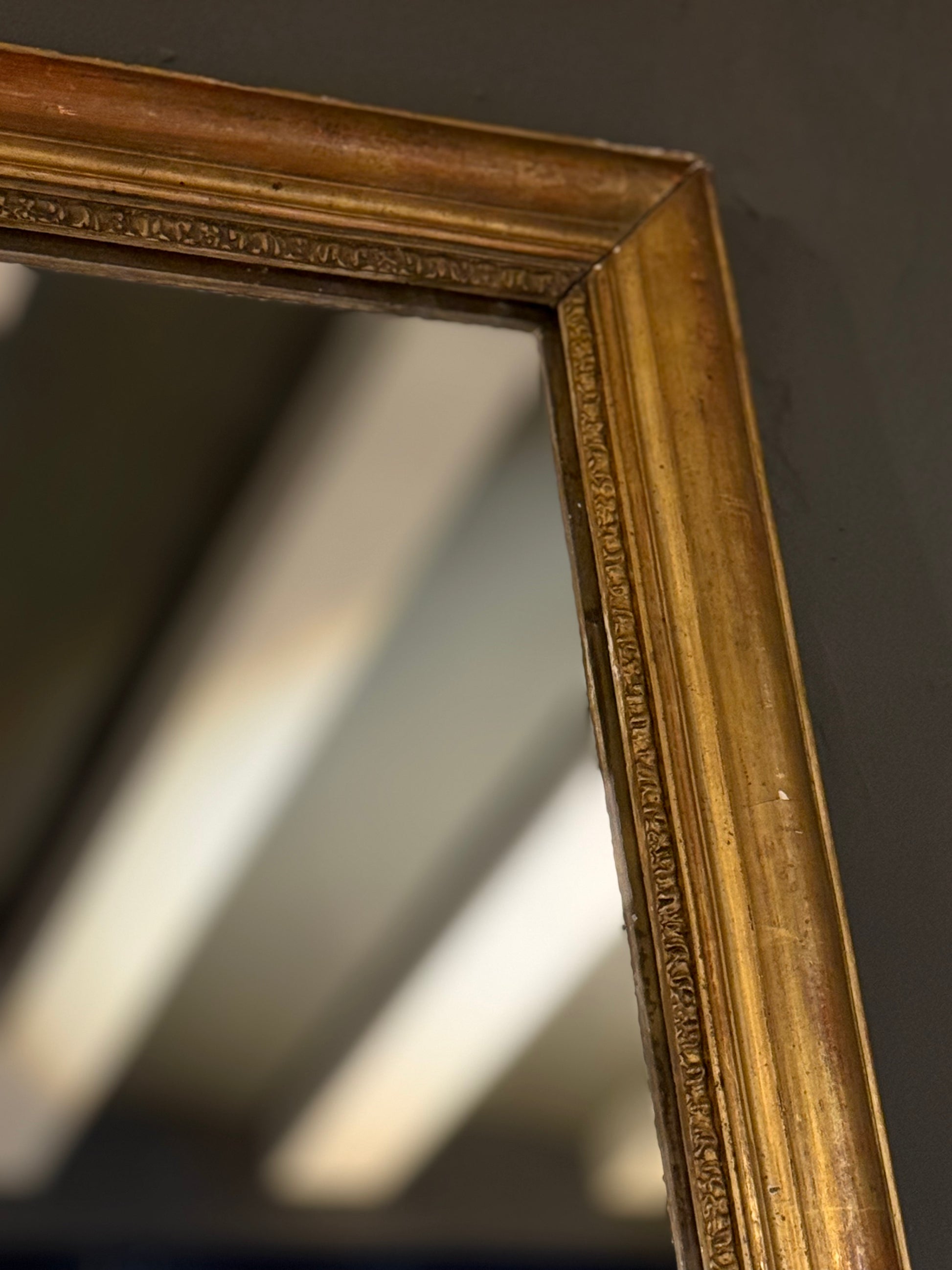 Precioso espejo con marco dorado con marco de pan de oro, de líneas clásicas proporciones elegantes. Perfecto para dar luz, amplitud y un toque sofisticado a cualquier estancia.