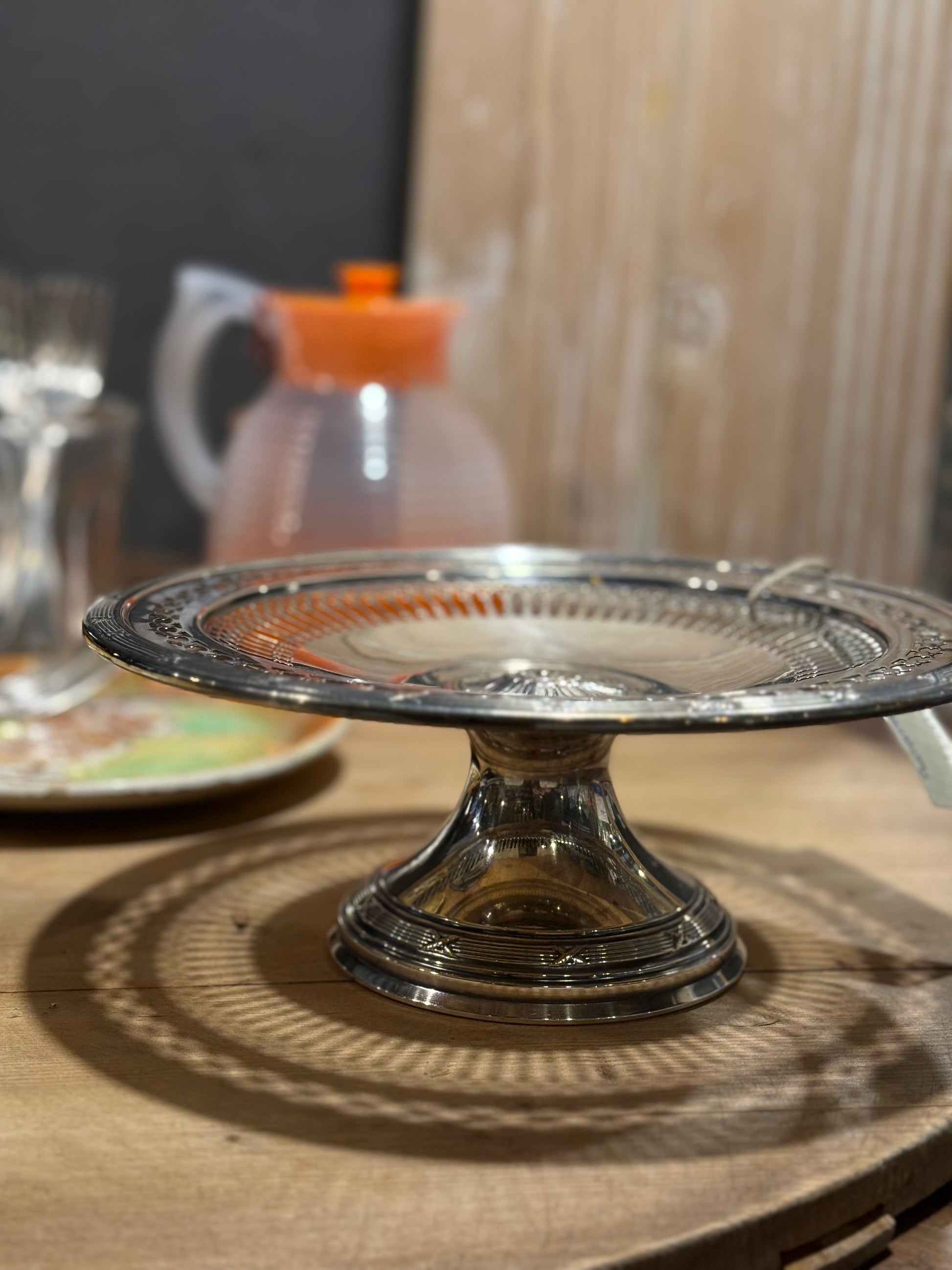 Pastelero de alpaca calado, con detalle de flor en el centro.