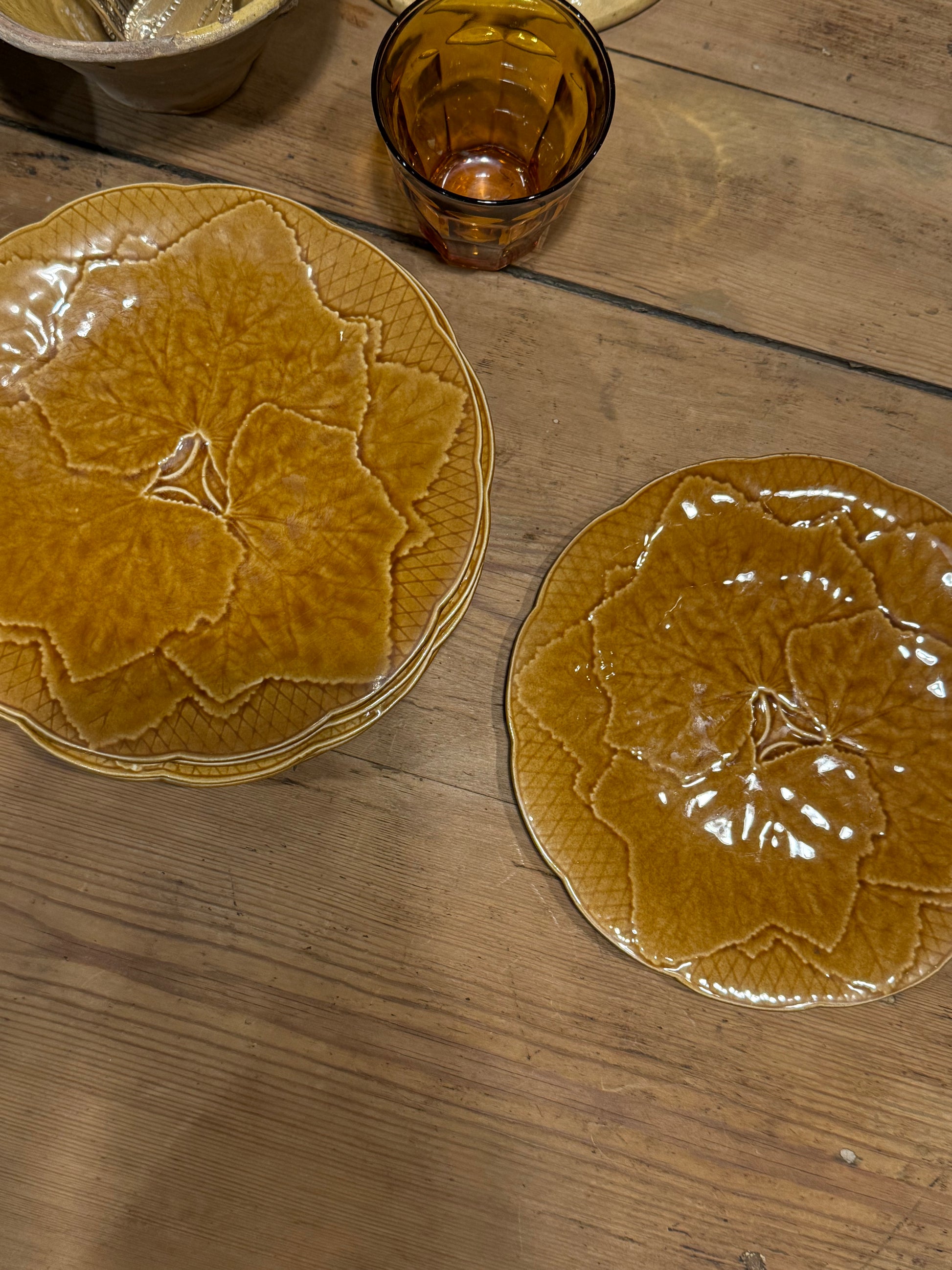Set de 10 platos de hojas de la icónica marca Gien en un precioso tono ocre.