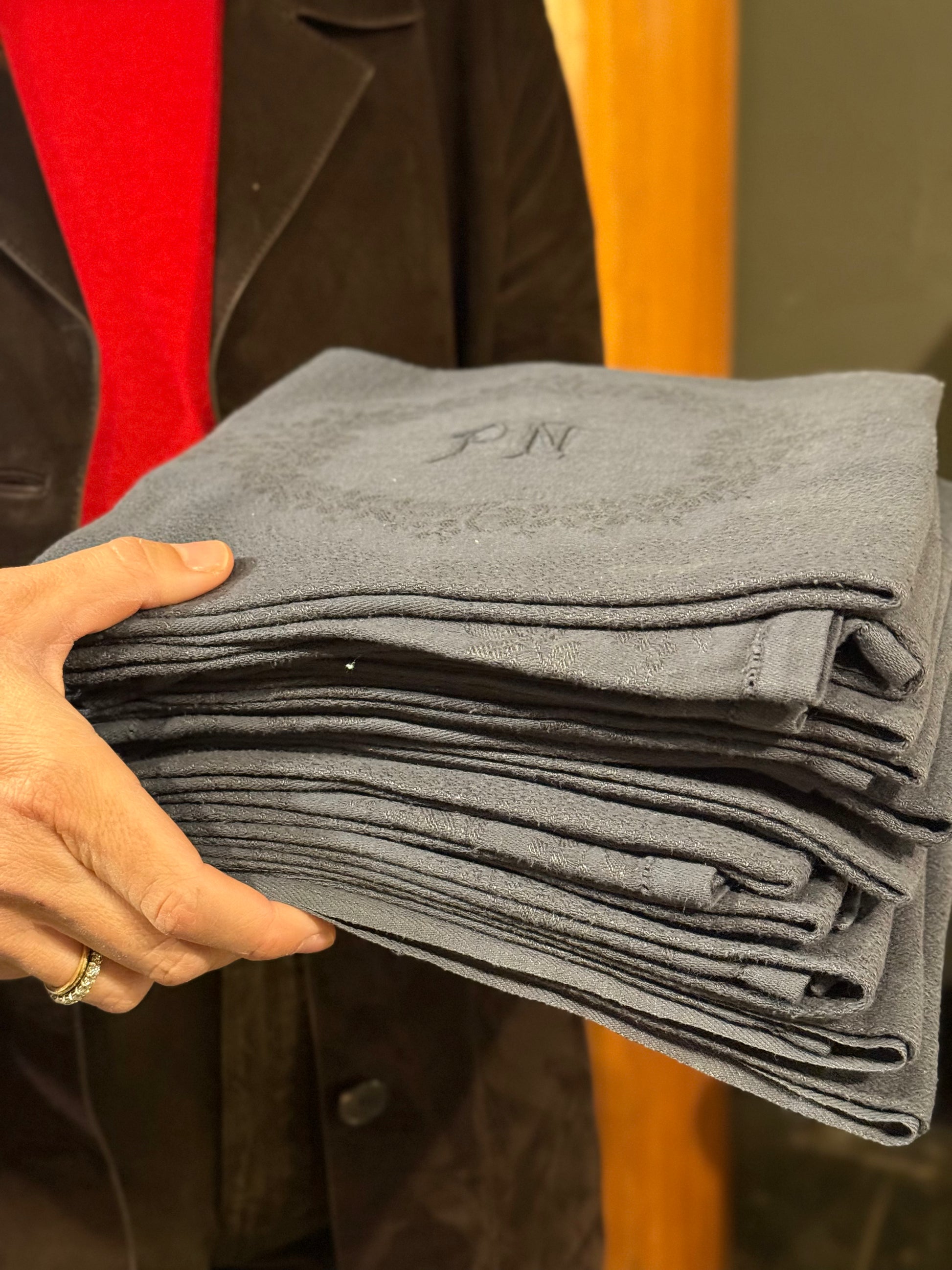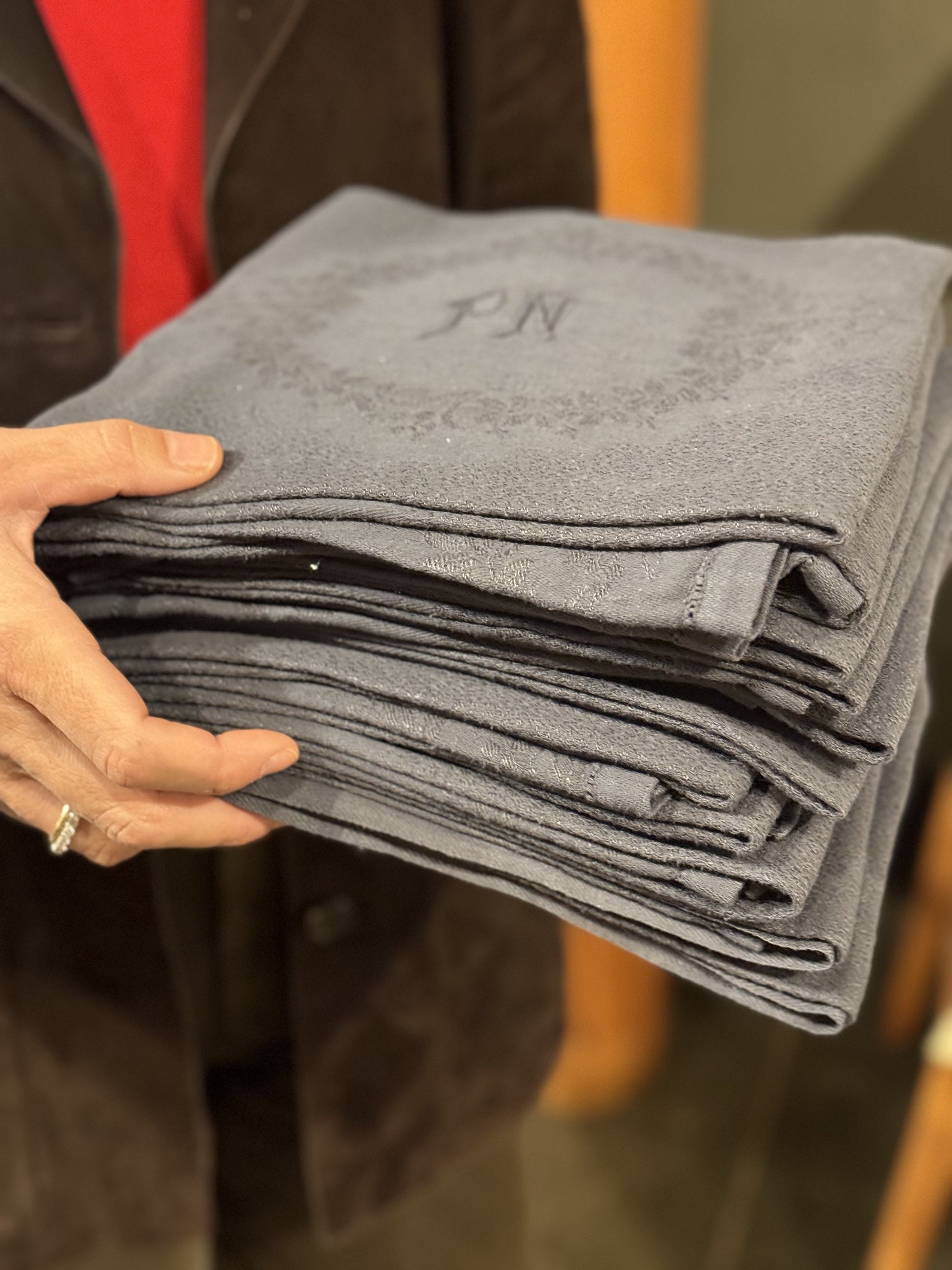 12 servilletas en color gris. Iniciales "PN"